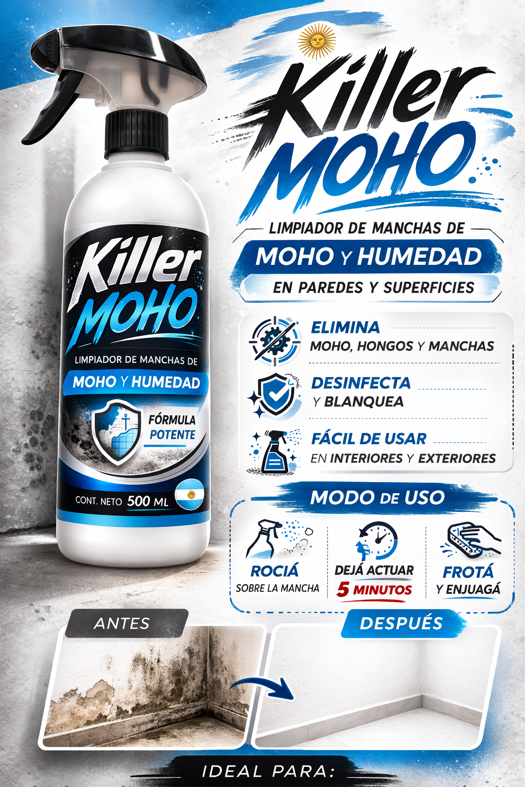 Olvidate de las manchas oscuras y la humedad persistente. Killer Moho actúa rápido y devuelve a tus superficies su aspecto original sin esfuerzo excesivo.